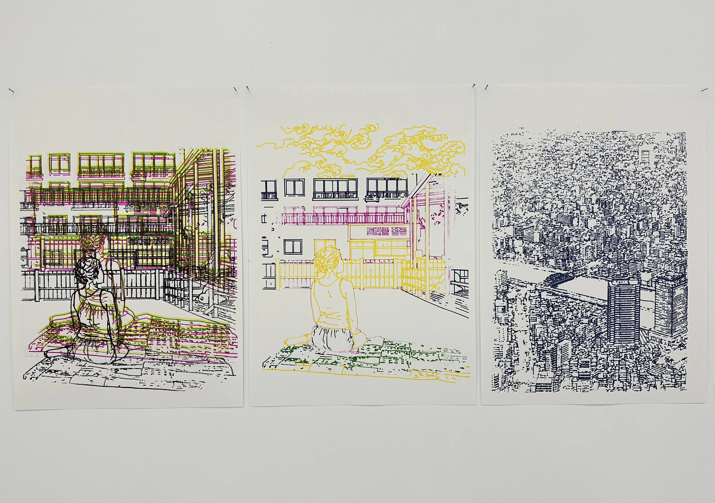 Acrylic and ink on aluminium composite panel, cedar subframe